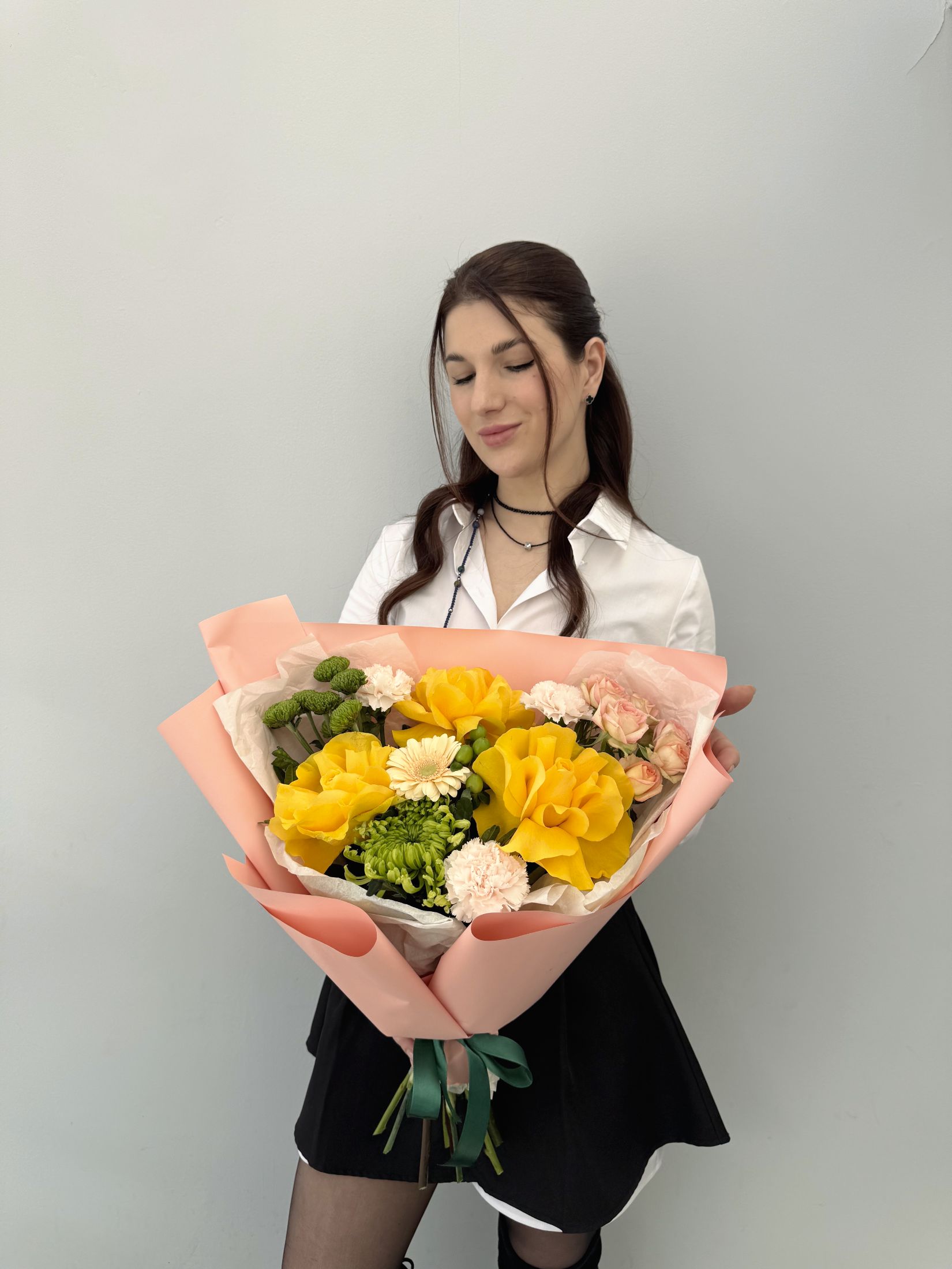 Этот букет — как солнечное прикосновение в самый разгар лета.